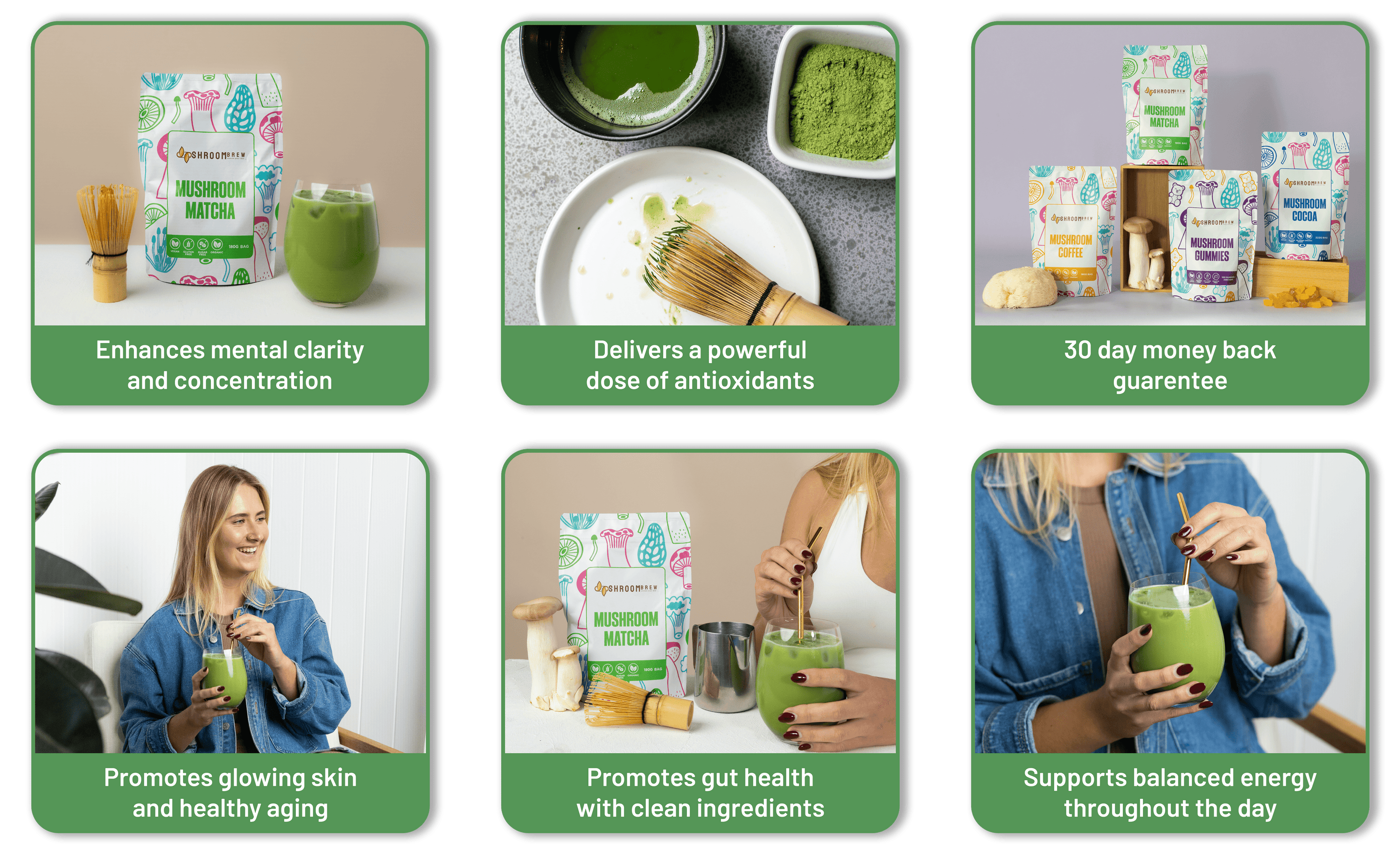 Shroombrew Matcha is a unique blend of high-quality matcha green tea combined with functional mushrooms like Lion’s Mane and Reishi to enhance both mental and physical well-being.